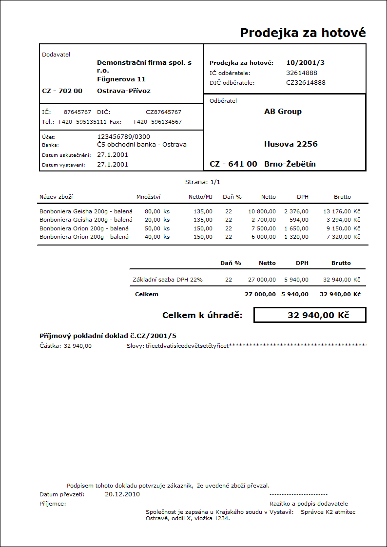 TaxRecapitulation - Ano Ano - zobrazí se daňová rekapitulace. |