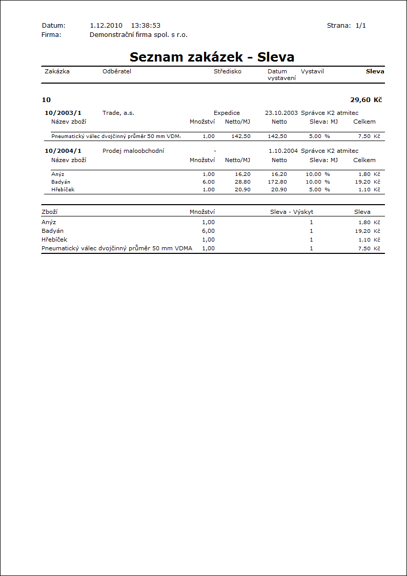 Discount - Ano Ano - zobrazí slevu zadanou v položce. |