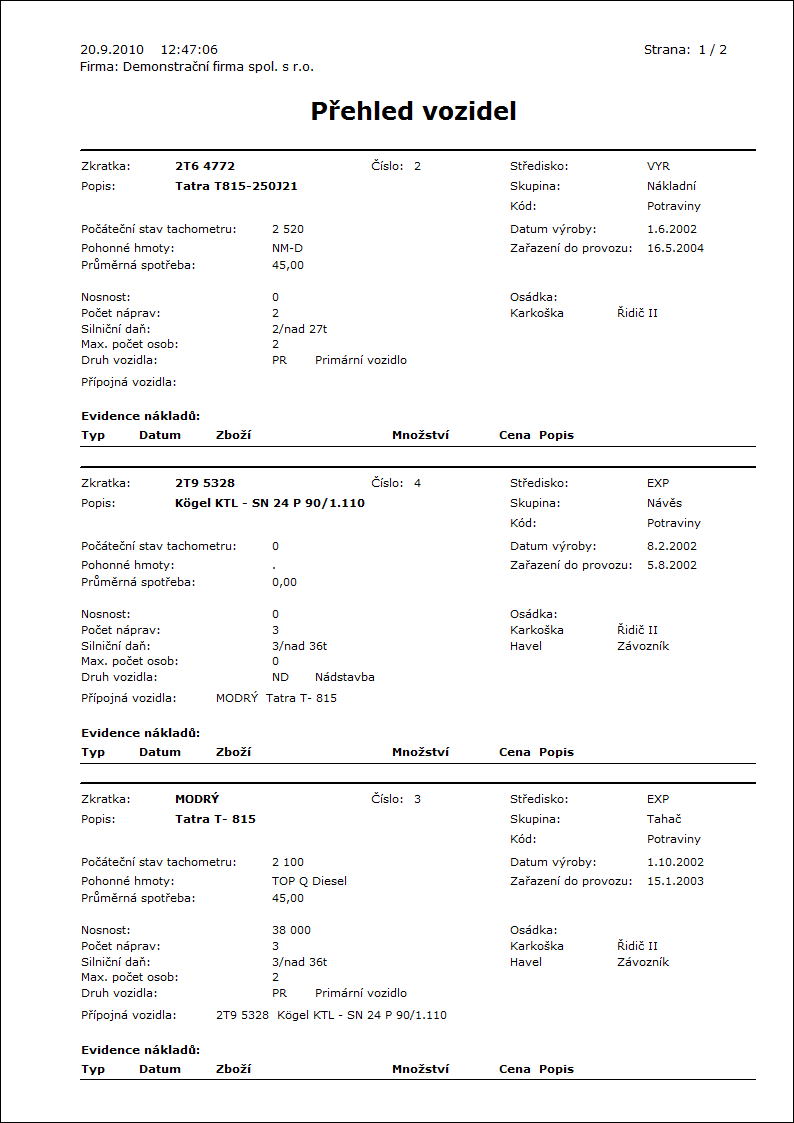 Popis sestavy: Sestava umožní vytisknout skladovou kartu za jednotlivá (nebo za všechna) umístění.
