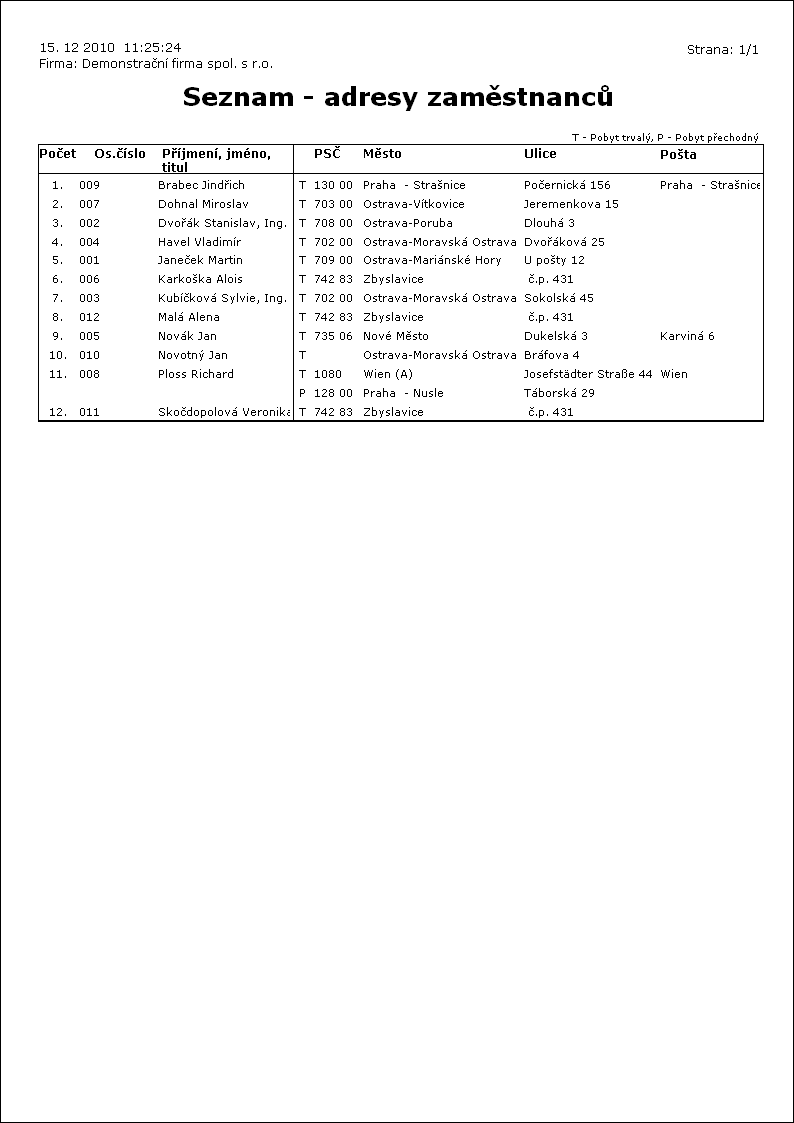 Popis sestavy: Hlášení stavu zaměstnanců na ÚP. Sestava je vytvořena podle oficiálního formuláře. Počet THP a ostatních zaměstnanců - číselník Skupina zkratka 1 Počet D a POP zaměstnanců - číselník Skupina zkratka 2 Počet důchodců - jakýkoli druh důchodu Cizinci - občané slovenské republiky - dle státní příslušnosti Cizinci z EU a EHP a švýcarska (mimo občanů slovenska) - dle skupiny v číselníku Státy Cizinci z ostatních zemí - mimo cizince výše uvedené Počet zaměstnanců na kratší pracovní poměr - dle sjednané pracovní doby zaměstnance Počet agenturních zaměstnanců - dle zatržítka Agenturní pracovník (načtou se všichni, kteří mají zatrženo)