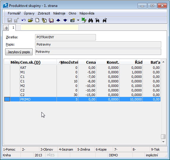 Insert a new price group via the Ins key or the F6 key.