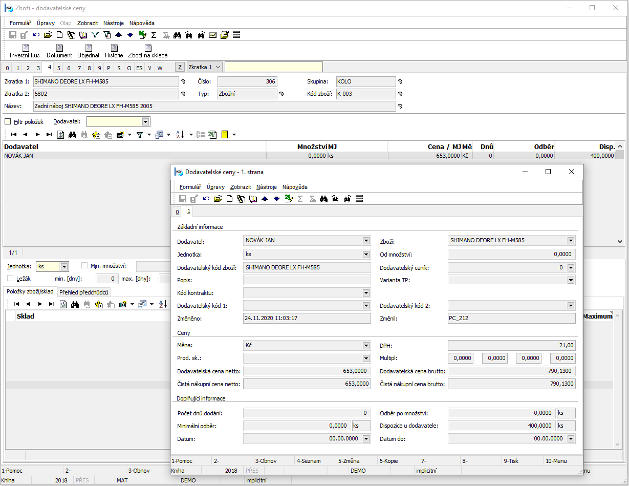 Defining of supplier Prices in IS K2 is used for the case when a business partner delivers goods by the system of fixed prices and its adjustments according to the product groups, multipliers and the codes of article. Supplier price is valid for the currency for which it is defined.