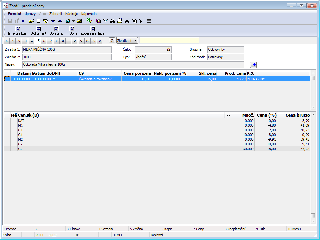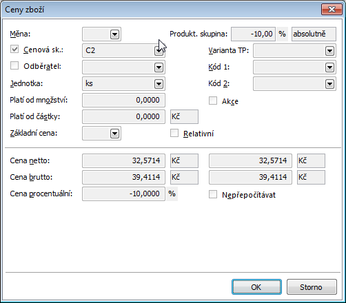Selling prices can be entered using Price Lists (they must be activated in the Configure Price Lists) or in the original way. The description of Price lists is stated in the chapter Sale / Basic data / Price lists. The following chapters deal with setting the selling prices in the original way.