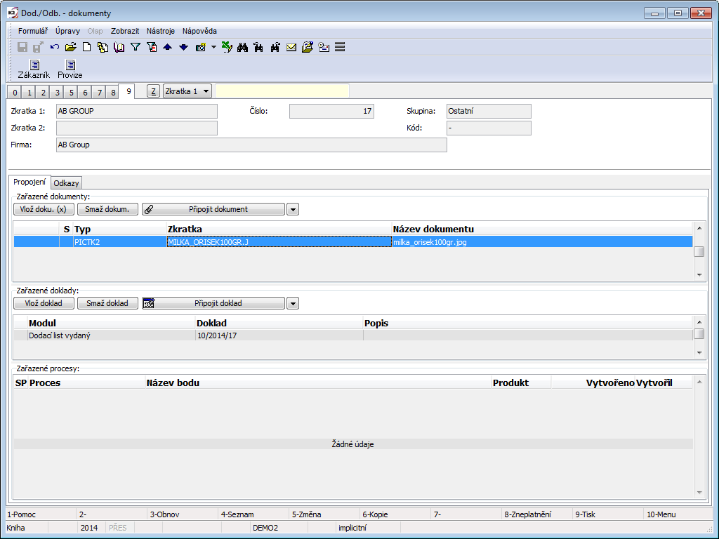 By confirming of the selection the list of the documents opens and by Enter key you insert link to a required document. You can insert the documents also in bulk so that you mark the documents which you want to insert and you confirm the selection by Enter key. You save it by standard way by F2 key.