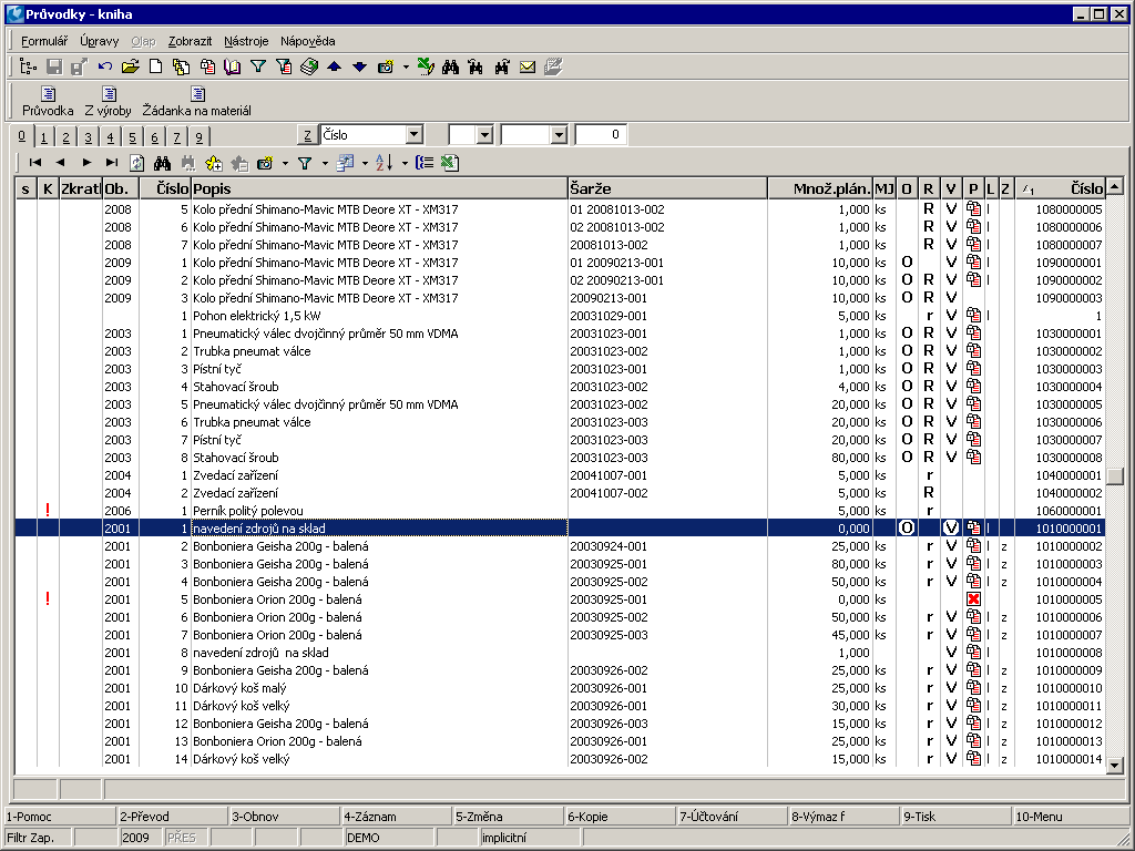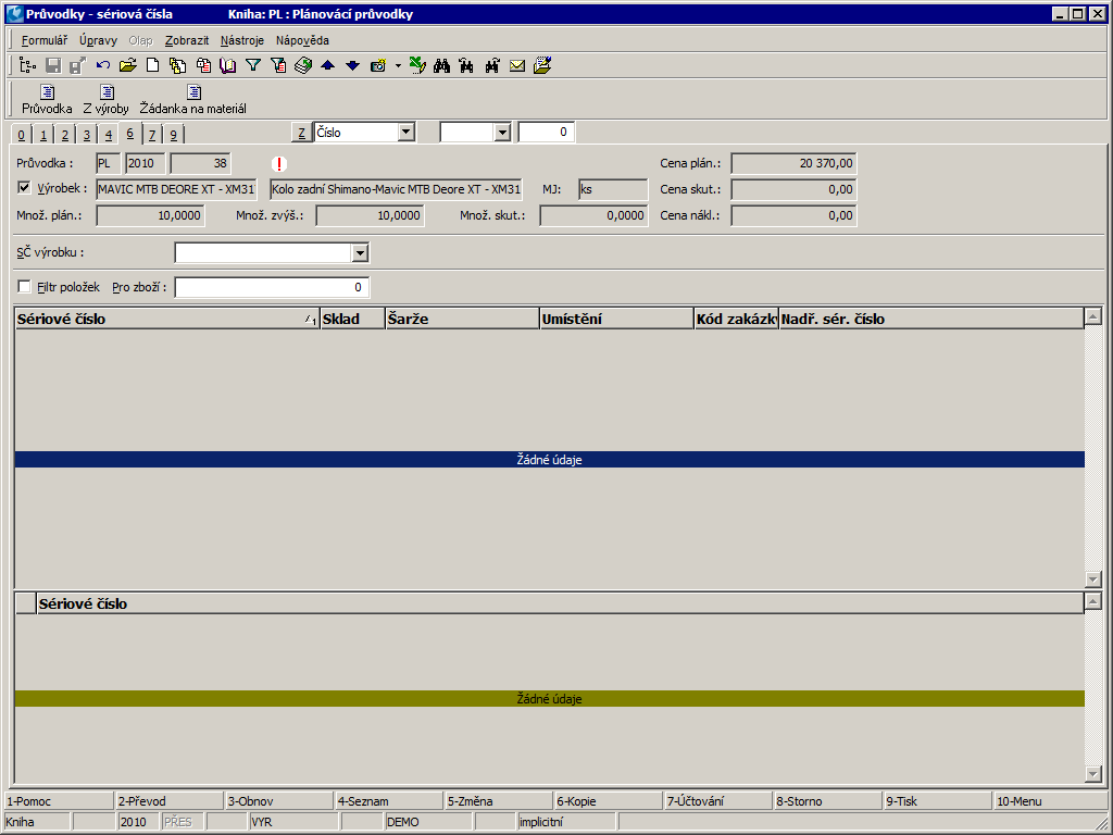 Batch of a product. A batch can be predefined by selection from the Batches book. Accessible only if  the given product has the Batch registration option checked on the 1st page of the Article card. If no batch is predefined, it is automatically created during the production completion.