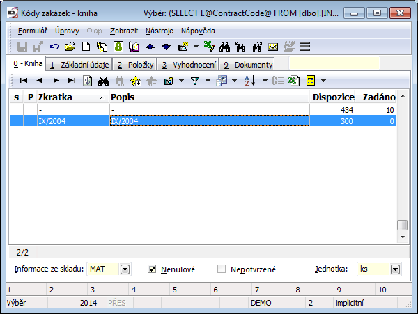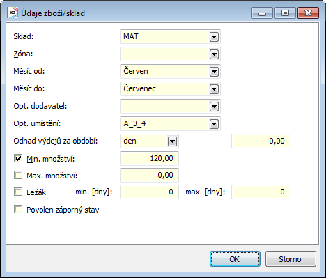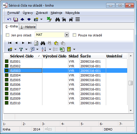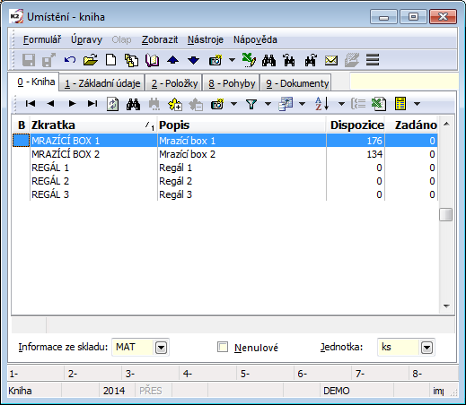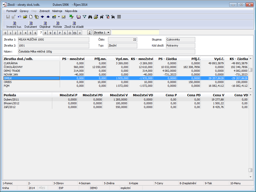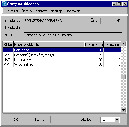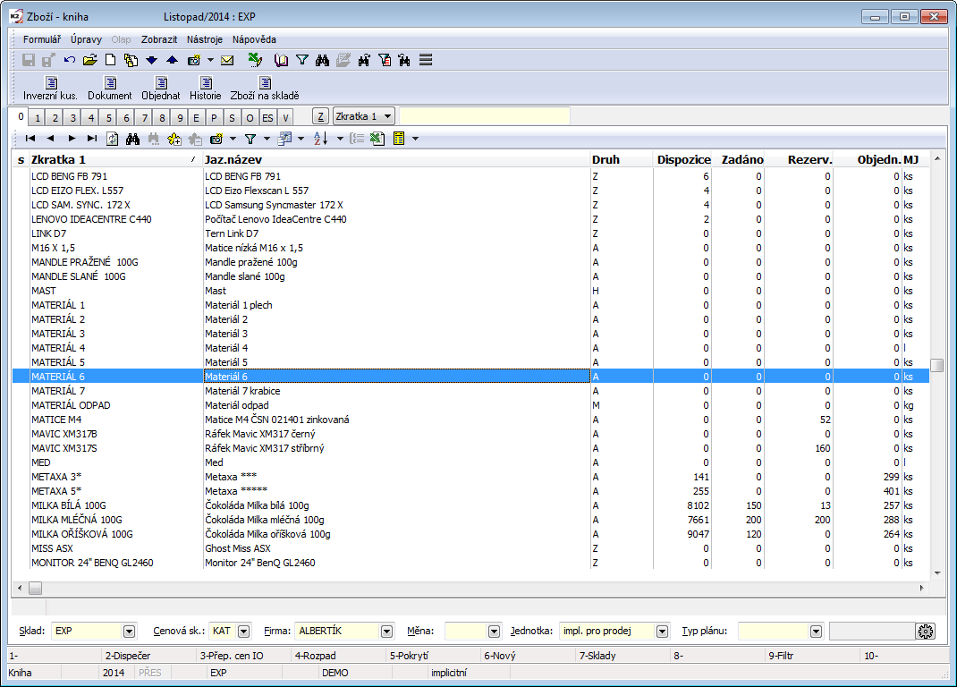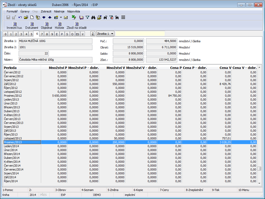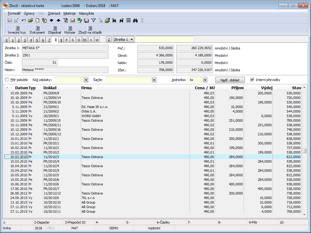 From the point of monitoring stock records, setting the requested stock and the current period is essential. The display of stock information is tied to this. These data are also essential for the printing of stock reports. The set period and stock are displayed in the upper blue bar on the screen. Changing the period and stock may be done by pressing the Alt+F10 key.