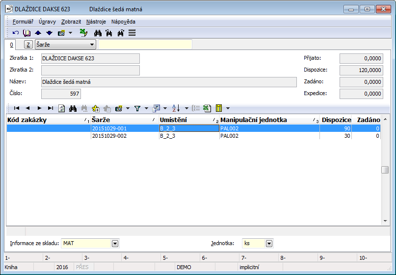 - when setting the storage unit "pcs", the value in pcs (calculated on the basis of the batch coefficient).