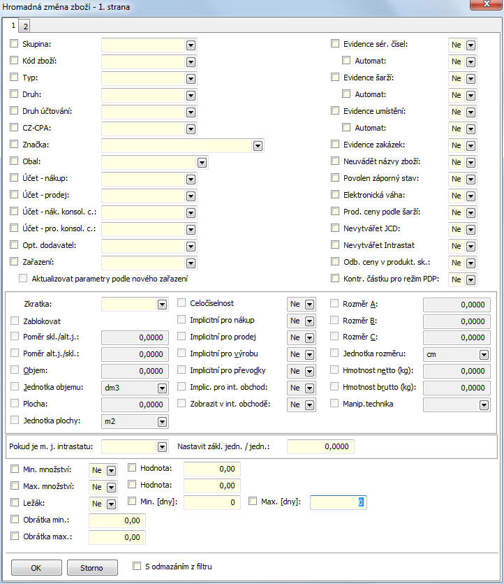 Group is a random number or text which every article has to have assigned. Instead of this text in this field can be entered dash too, that means it won't have got assigned a concrete group. By this division the database Article breaks up to the smaller and clearer groups with the collective properties (e. g. groups Grocery, Tools, Spare parts ...). Note: Record from the Groups code list cannot be deleted if the given group is used on a Article tab. |