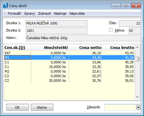 It affects the display of the selling prices in the Price group "CFDealC" column - the column is not default. When you set the selected company, the Price Group applied for its given supplier will appear. Displaying a Customer price has a priority over displaying a Price Group. If the Customer price of an article of this company does not exist, the price of a selected Price Group will be displayed in the Price Group column. |
