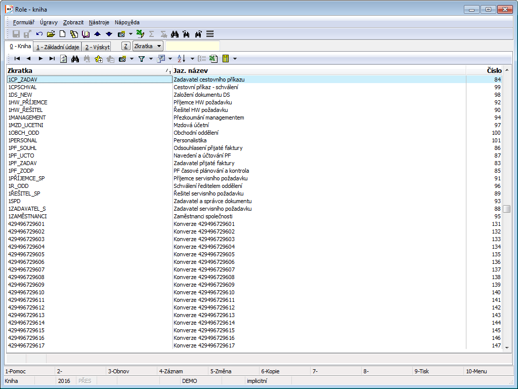 Basic data are entered and Contact Persons are added to roles on page 1 of Role book. List of contact persons is displayed by pressing Ins button in section Persons, then we set up rule to chosen person and hit Enter.