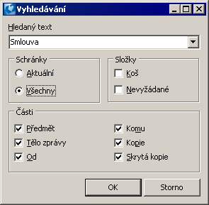 User can close the form by pressing of the Cancel button or Esc key. Note: If user closes the Search in Mail form in which the Searched Text field is filled-in and opens it again, the original searched text remains pasted in this field. |