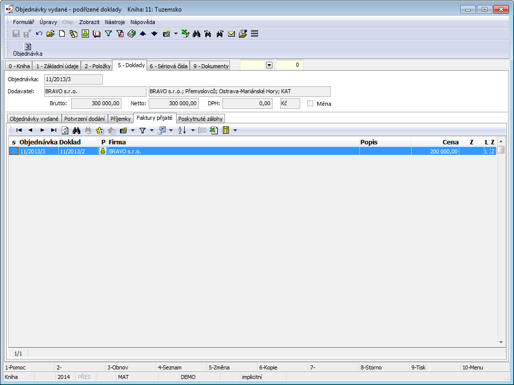 It is convenient to divide larger shipment into individual sub-orders and have them joined by means of the Contract Code field into one unit. In this way, it is also possible to join the purchase order from various books, branches, cost centres etc. into one unit.