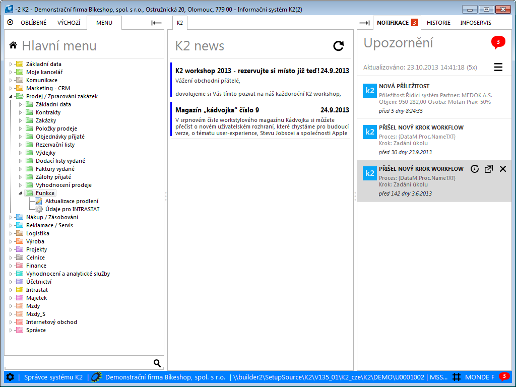 Picture: The open menu of the Sales / Processing of Sales Orders - Functions module