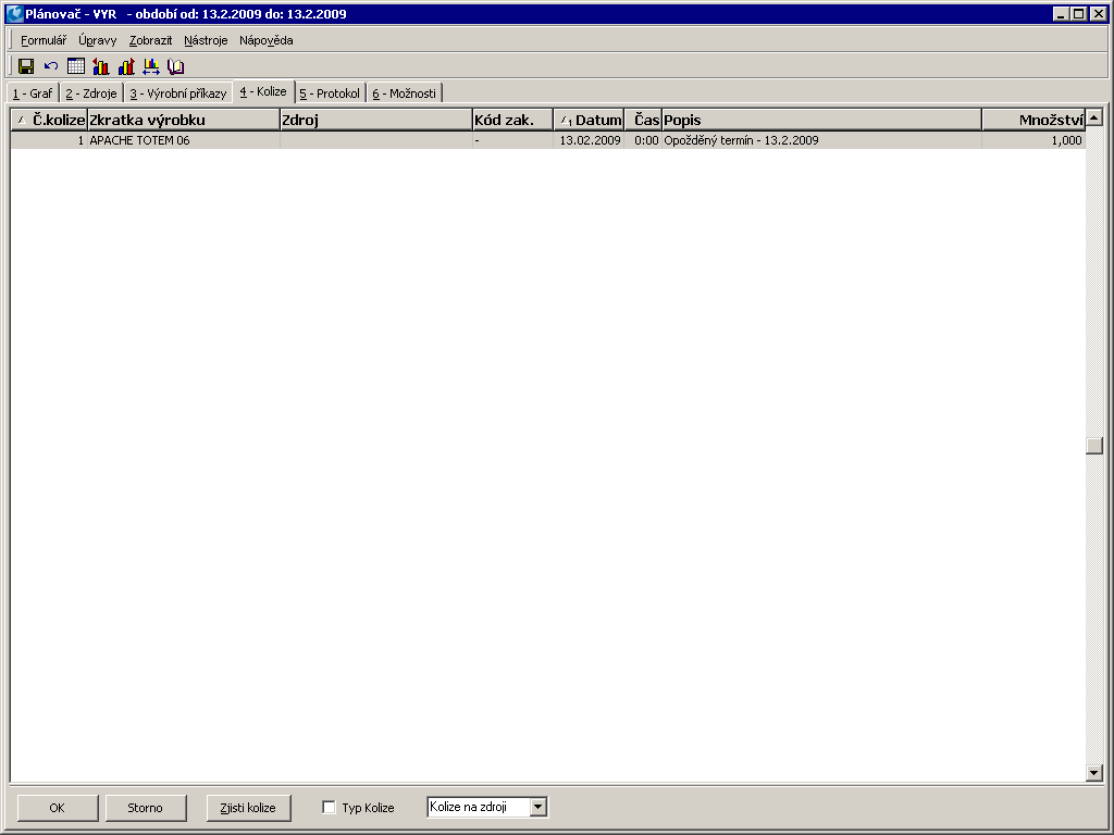 Picture: Production Planning - the Collisions tab