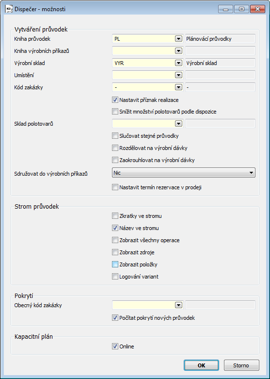 Selecting items that are to be displayed in the calendar. Activating the Job cards time items option ensures that requests for a given resource from scheduled job cards are displayed. Requirements from the job cards are displayed according to the Production schedule option (settings in the Resources book). For capacity records for a given day, the lock icon ( |
