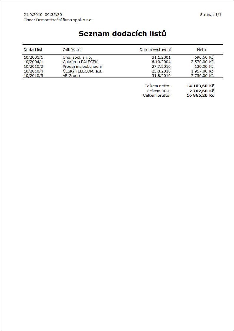 Title - Vyplněná hodnota parametru se zobrazí jako titul sestavy. Pokud není parametr vyplněn, zobrazí se původní název dokladu. |