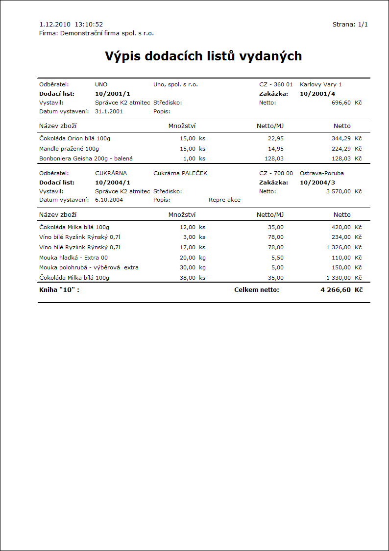 Popis sestavy: Přehled zboží prodaného zákazníkům. Sestava se spouští nad knihou Faktury vydané. V detailu každé karty zboží lze zobrazit rozpad po zákaznících a cenových kategoriích, a následně dále ještě rozpad na jednotlivé dny prodeje. Rozhodujícím datem je Datum účetního případu faktury. Zobrazovanými údaji jsou prodejní cena, nákupní cena, zisk a marže. |