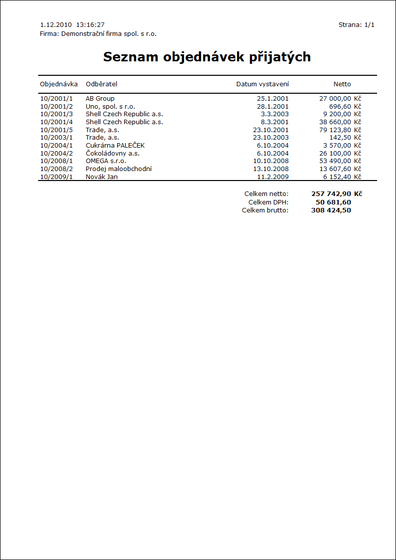 Popis sestavy: Přehled zákazníků podle dosaženého obratu - seřazeno sestupně. |