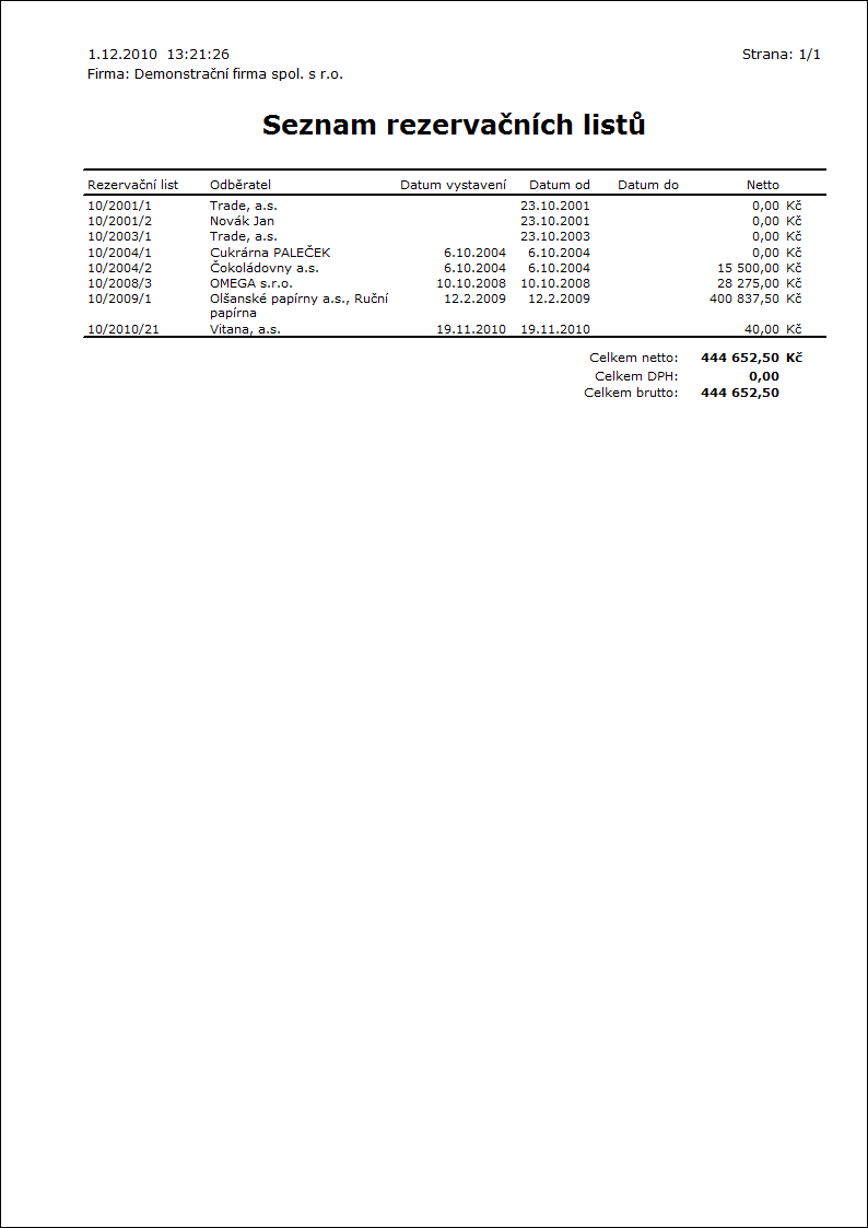 ReportTitle - Statistika prodeje / Statistika nákupu (dle místa spuštění) Název statistiky. |