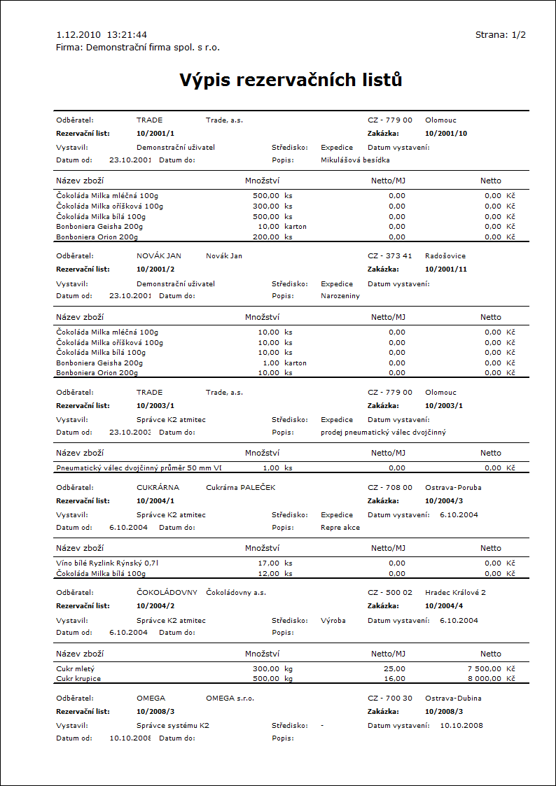 Adresa ve stromu: [Prodej/Zpracování zakázek] [Základní data] [Zboží] [Seznamy zboží] |