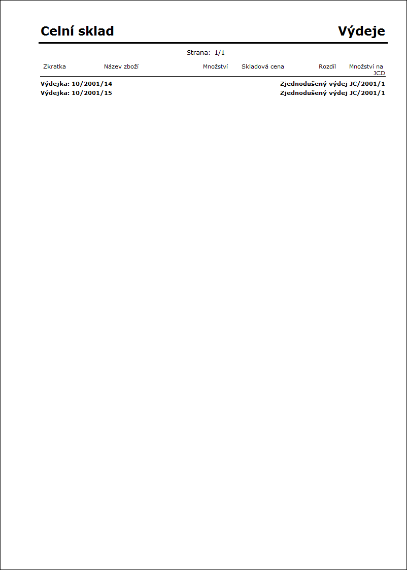 Popis sestavy: Sestava kontroluje na skladových dokladech shodu mezi hlavičkou a položkami a to pro tyto údaje: datum potvrzení, sklad a storno hlavičky versus nestornované položky. Sestavu lze využít při hledání problémů ve skladové evidenci či účetnictví. |