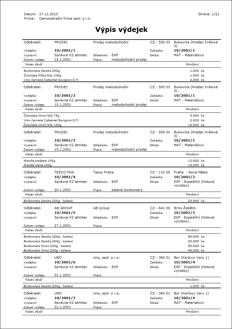 Adresa ve stromu: [Sklad] [Prodej / Zpracování zakázek] [Výdejky] [Prodej / Zpracování zakázek] [Základní data] [Zboží] [Nákup / Zásobování] [Příjemky] [Nákup / Zásobování] [Základní data] [Zboží] [Výroba] [Základní data] [Výroba] [Řízení výroby] [Průvodky] |