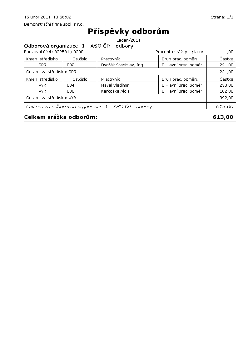 Popis sestavy: Zobrazí informace potřebné pro vytvoření bankovního příkazu. Spustitelná nad knihou Srážky z mezd. |