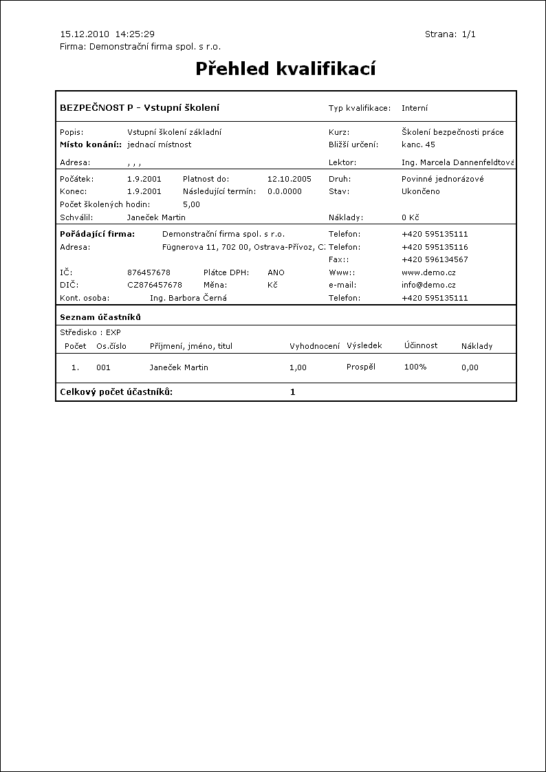 Popis sestavy: Sestava zobrazuje uloženou průměrnou sjednanou dobu zaměstnance ze strany P odpracované hodiny a náhradní doby částečně i plně započitatelné. Zobrazuje uložený nárok na dovolenou ze strany P i skutečně dosažený nárok na dovolenou do daného období, nad kterým se sestava spouští, spočítaný dle skutečnosti. Pro zobrazení dat v sestavě je nutné mít proveden kontrolní výpočet.