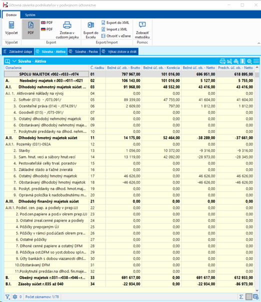 Obr.: Riadky ekonomických analýz - záložka Sumácia