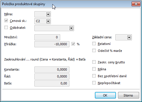 Complete the individual fields with the data from a supplier. A Supplier Product Group is always assigned to a given supplier. Select a product group from the table Supplier Product Groups. There you can define a new product group by pressing the F6 key (or Ins), or change (including multiplier values) whichever product group by the F5 key. We We have an option to set multiplier values and rounding within a Product Group, which will be applied to the calculation of net purchase price.