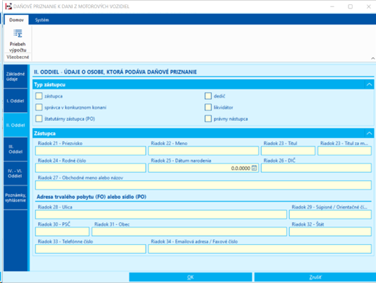 Vo formulári je možné zaškrtnutím poľa doplniť potrebné informácie týkajúce sa typu zástupcu, ako aj doplniť údaje patriace na riadky č. 21 – 34.