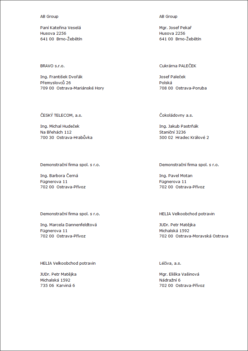 2. pozice: "Addr" - je-li zadáno, pak se zobrazí adresa firmy.
