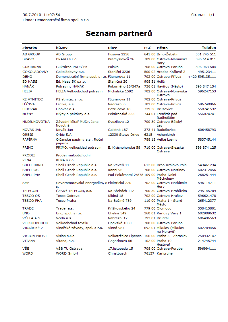 [Marketing / Nabídky/Poptávky] [Tisk dokladů - seznamy]