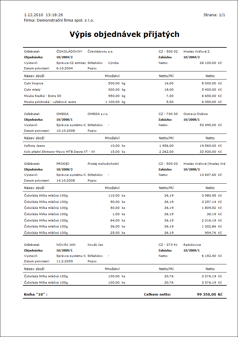 Adresa ve stromu: [Prodej / Zpracování zakázek] [Vyhodnocení prodej] [Zákazníci] |