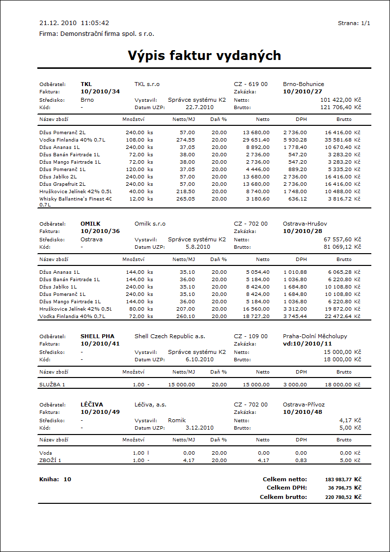 InvoiceItemsOnly - Ne Ano - zobrazí pouze položky z faktury. |