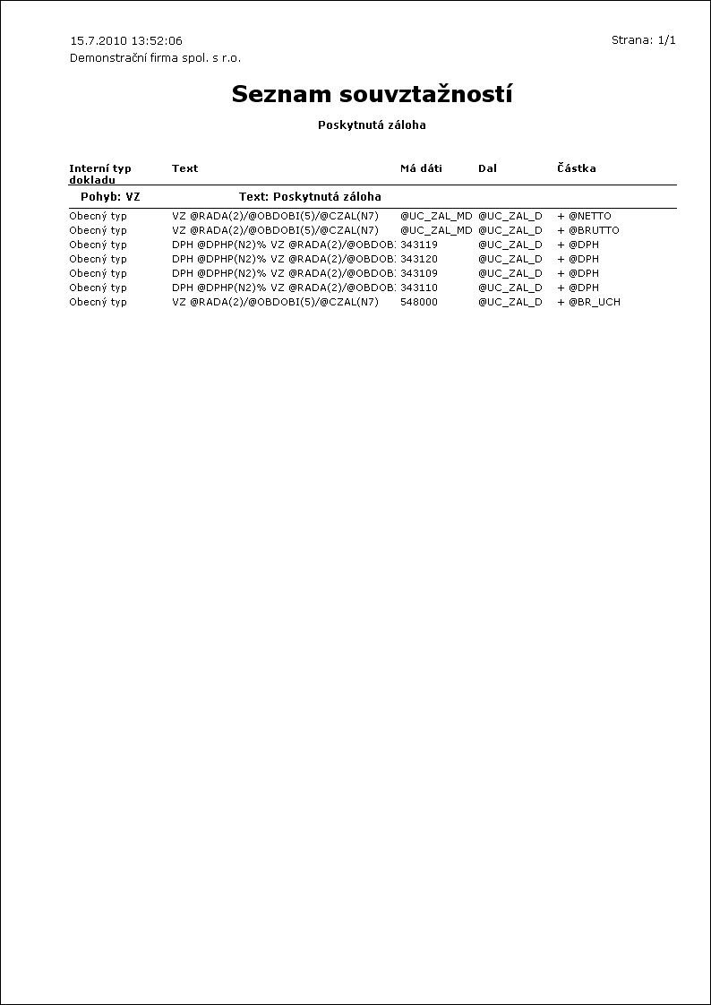 ShowDocItems - Ne Ano - pokud stejná sazba a typ daně, pak se položky neseskupí, ale zobrazí se stejně jako na 2.straně dokladu DPH (typicky u pokladních dokladů). |