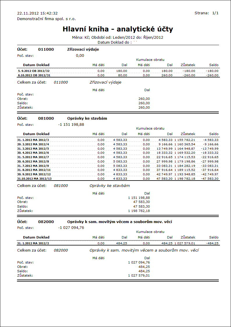 Popis sestavy: Sestava zobrazí doklady, zobrazené ve funkci Kontrola zaúčtování majetku. |