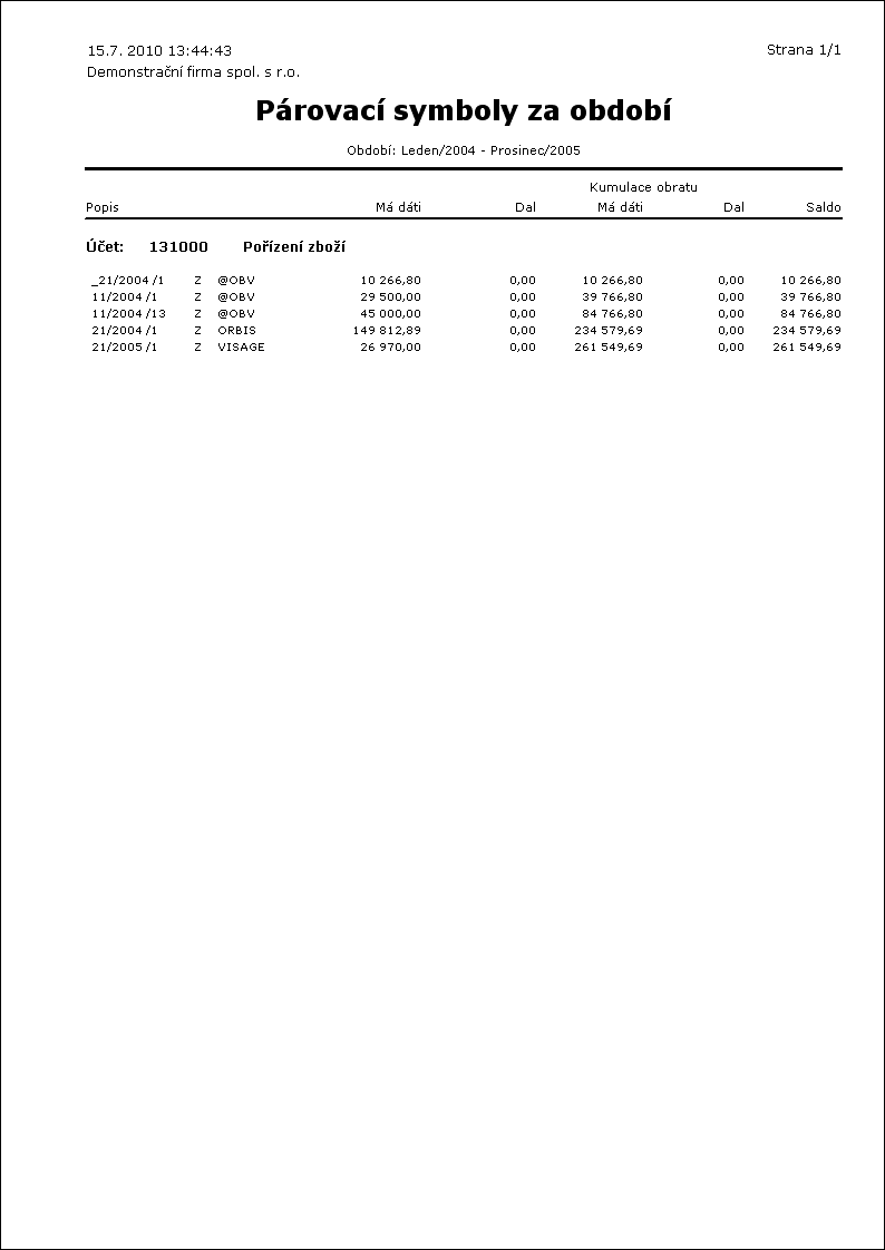 Popis sestavy: Sestava obsahuje seznam nezaplacených ostatních závazků seskupený podle závazkového účtu. U každého dokladu je vyčísleno brutto, zaplaceno a saldo. Za každý účet je k dispozici celkové saldo. |