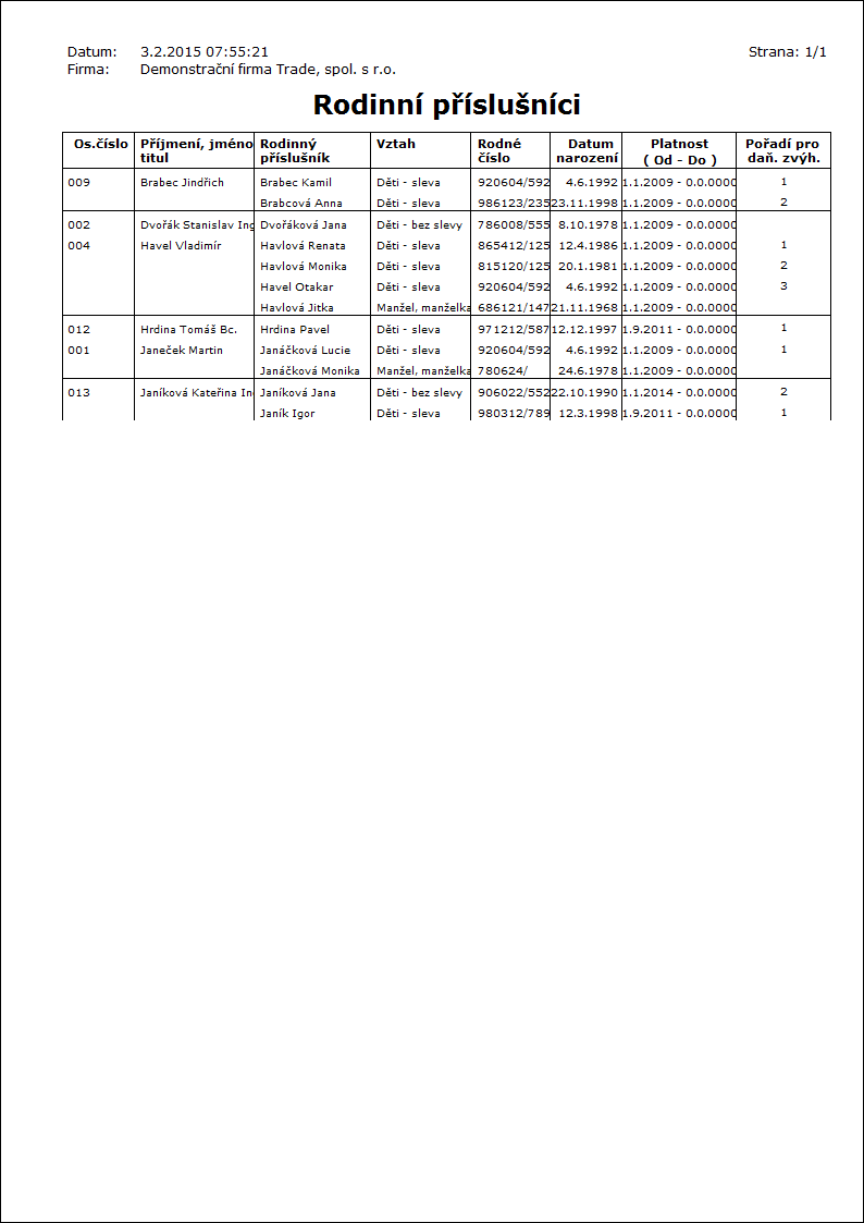 Do parametru lze zadat pole rodinných příslušníků, která nebudou zatržena na úvodním formuláři a nebudou tedy smazána.