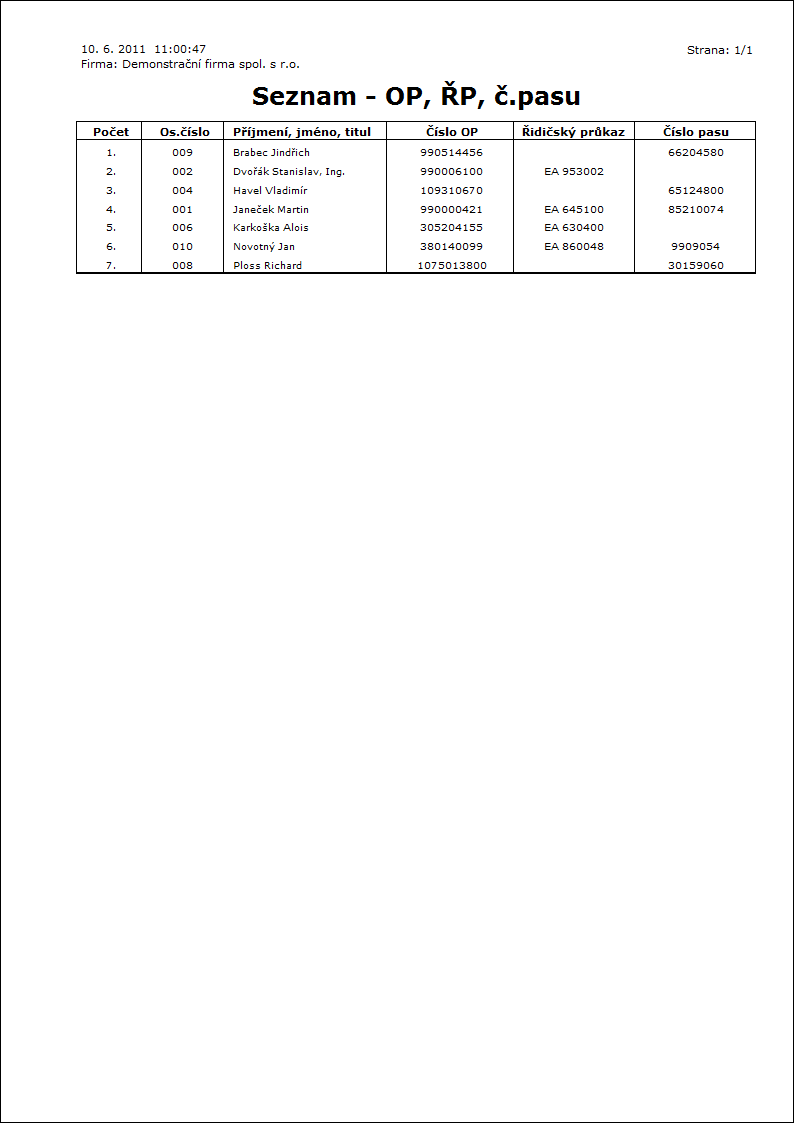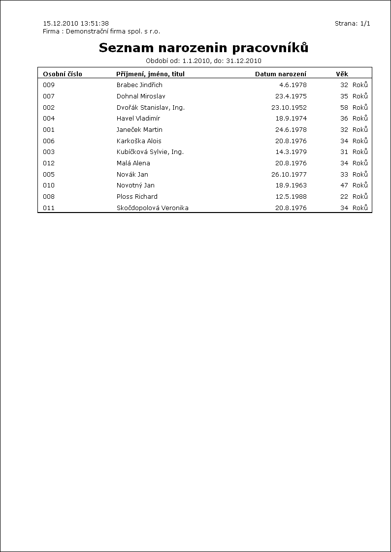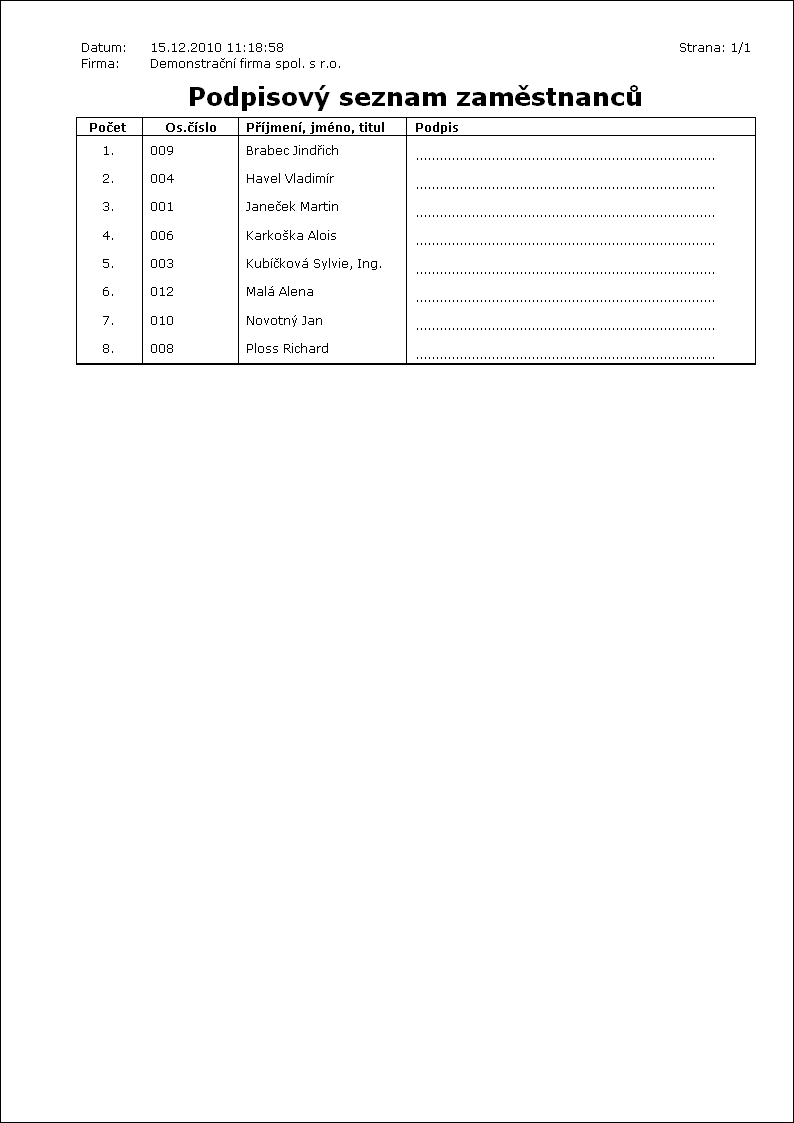 Popis sestavy: Telefonní seznam zaměstnanců. |