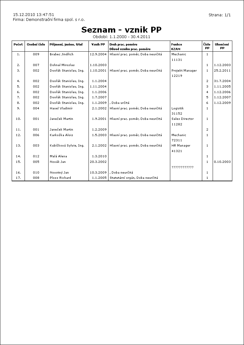 - Zatržítko Zpracovat pouze Pracovní poměry provede aktualizaci pouze na základě pracovních poměrů na personálních kartách, jiný typ pracovních vztahů nebude brát v potaz (nebudou se tedy hlásit DPP, DPČ ano jiný typ vztahů).