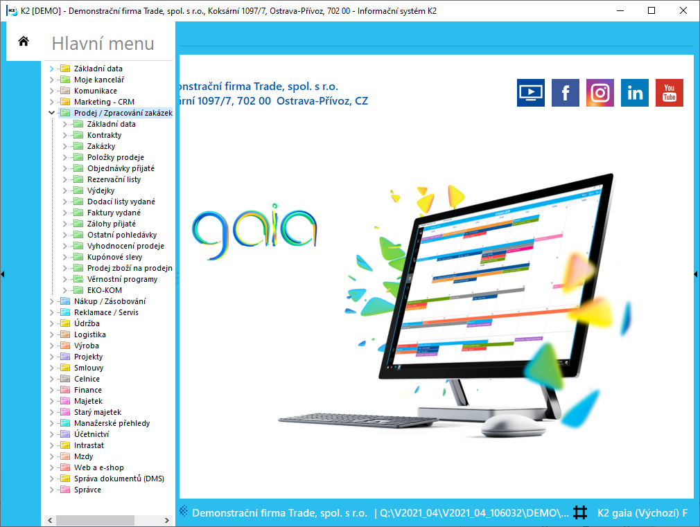Obr.: Otevřené menu modulu Prodej / Zpracování zakázek - Zakázky