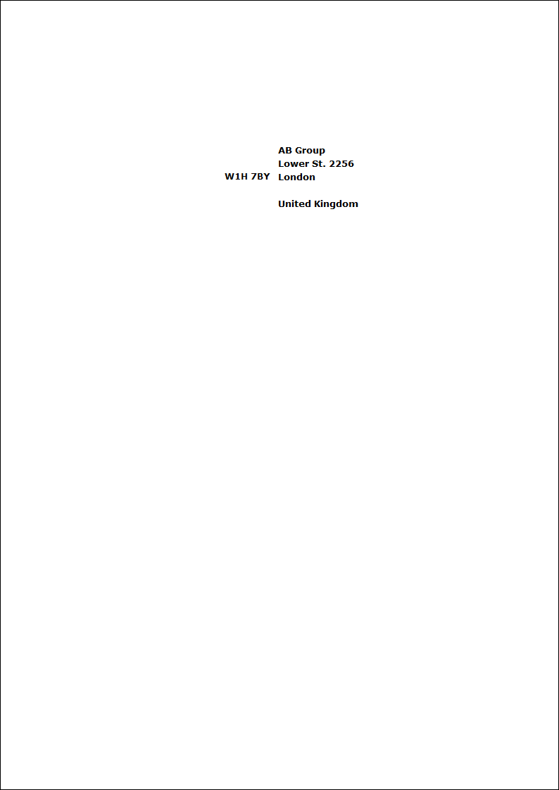 Report description: Print of envelops with initials (address) of a partner. It is possible to set the distance from the left edge (Width) and the distance from the top edge (Height) parametrically. |