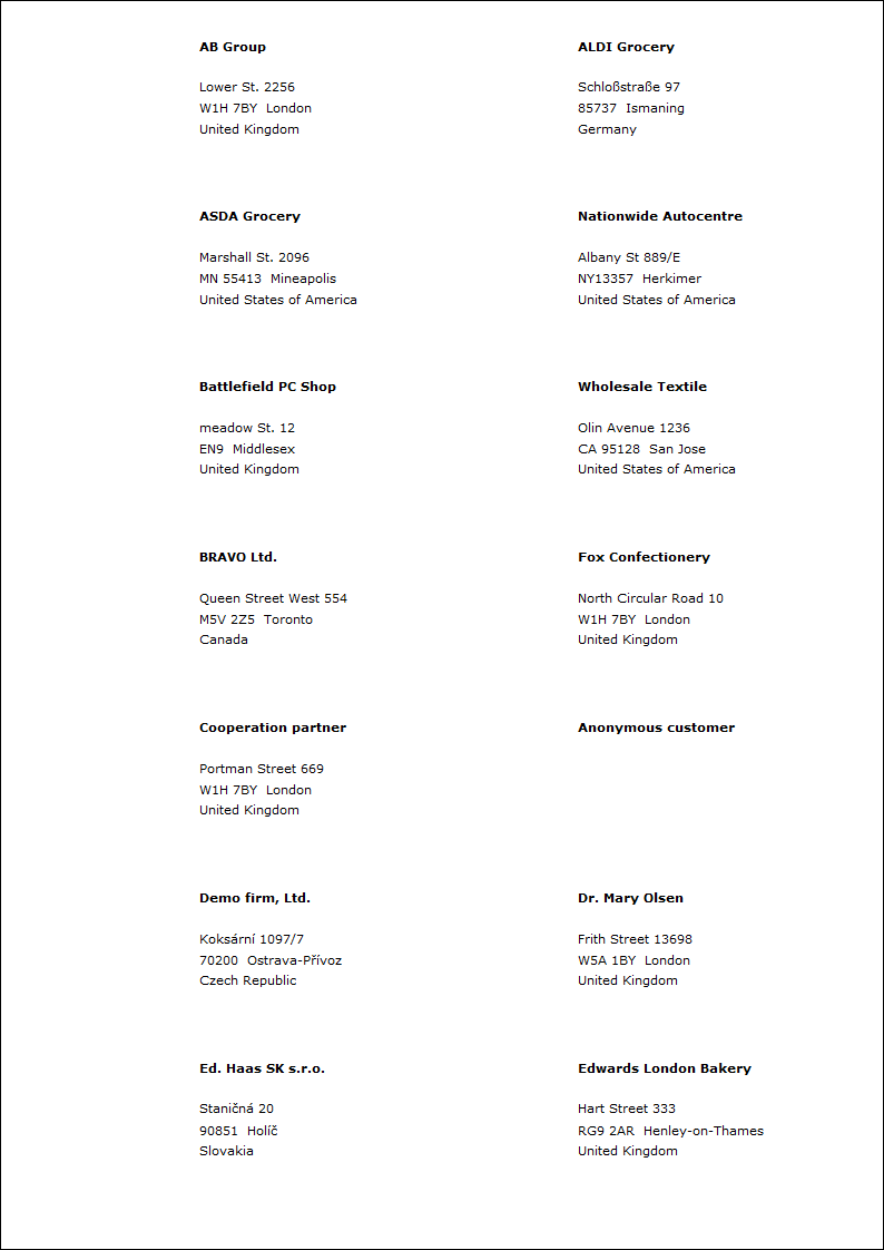 Report description: Print of initials (address) of partners on self/stick labels. It is possible to set the height of individual labels by the "Height" parameter. |