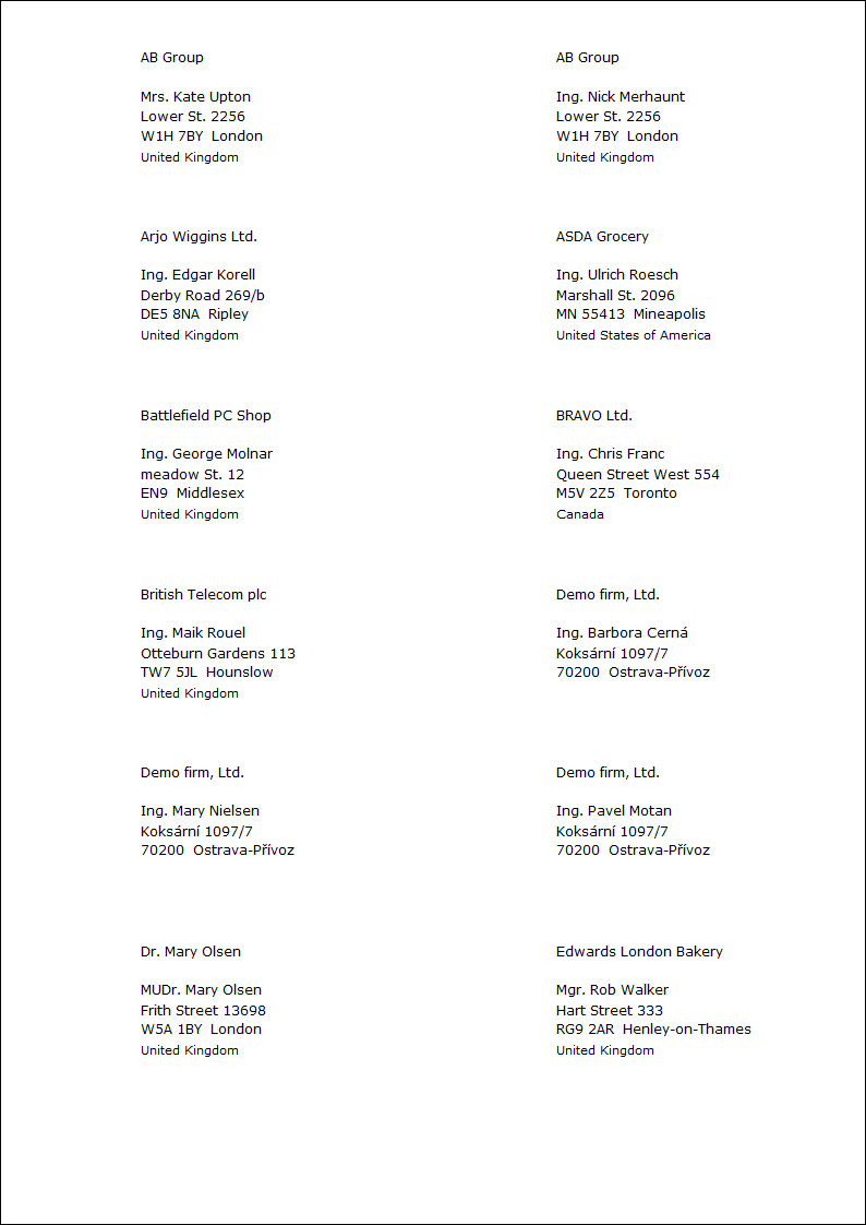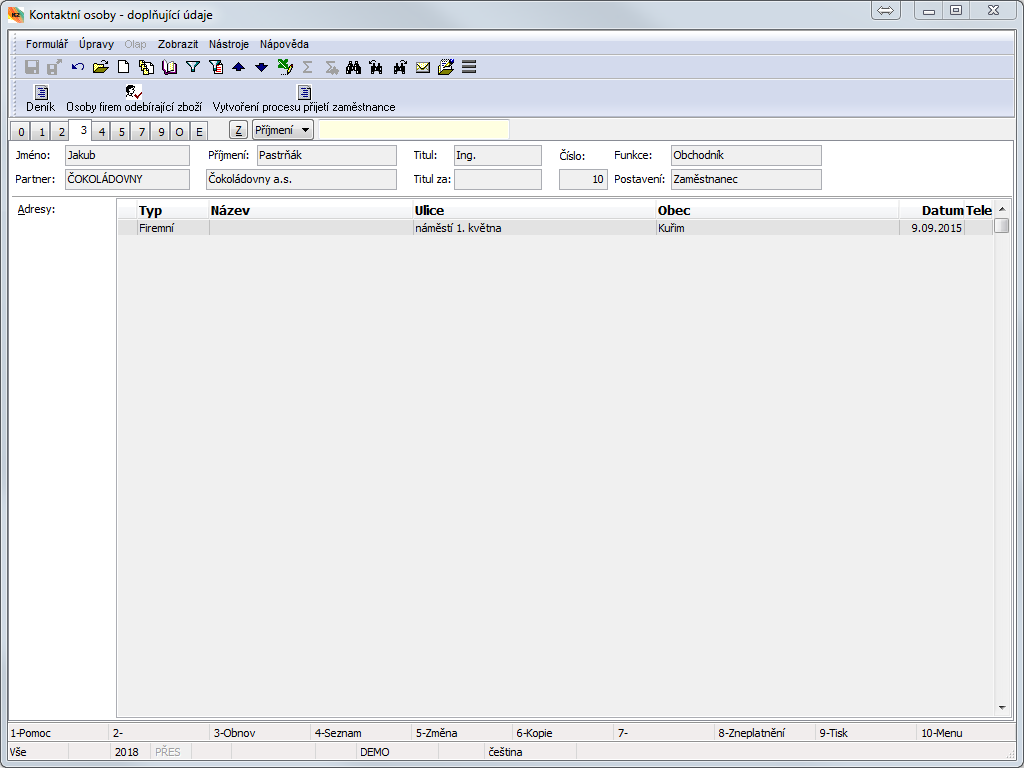 On the 1 st page there are given basic information about contact person. By Ctrl + Enter keys can in Browse on 1 st Page of contact persons card open 1 st Page of Partner card.