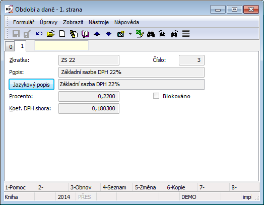 The VAT rates code list can be called up from the tree menu Basic data - VAT - VAT rates. Contains a list of VAT rates. Use the Ins key to create a new record in the codelist.