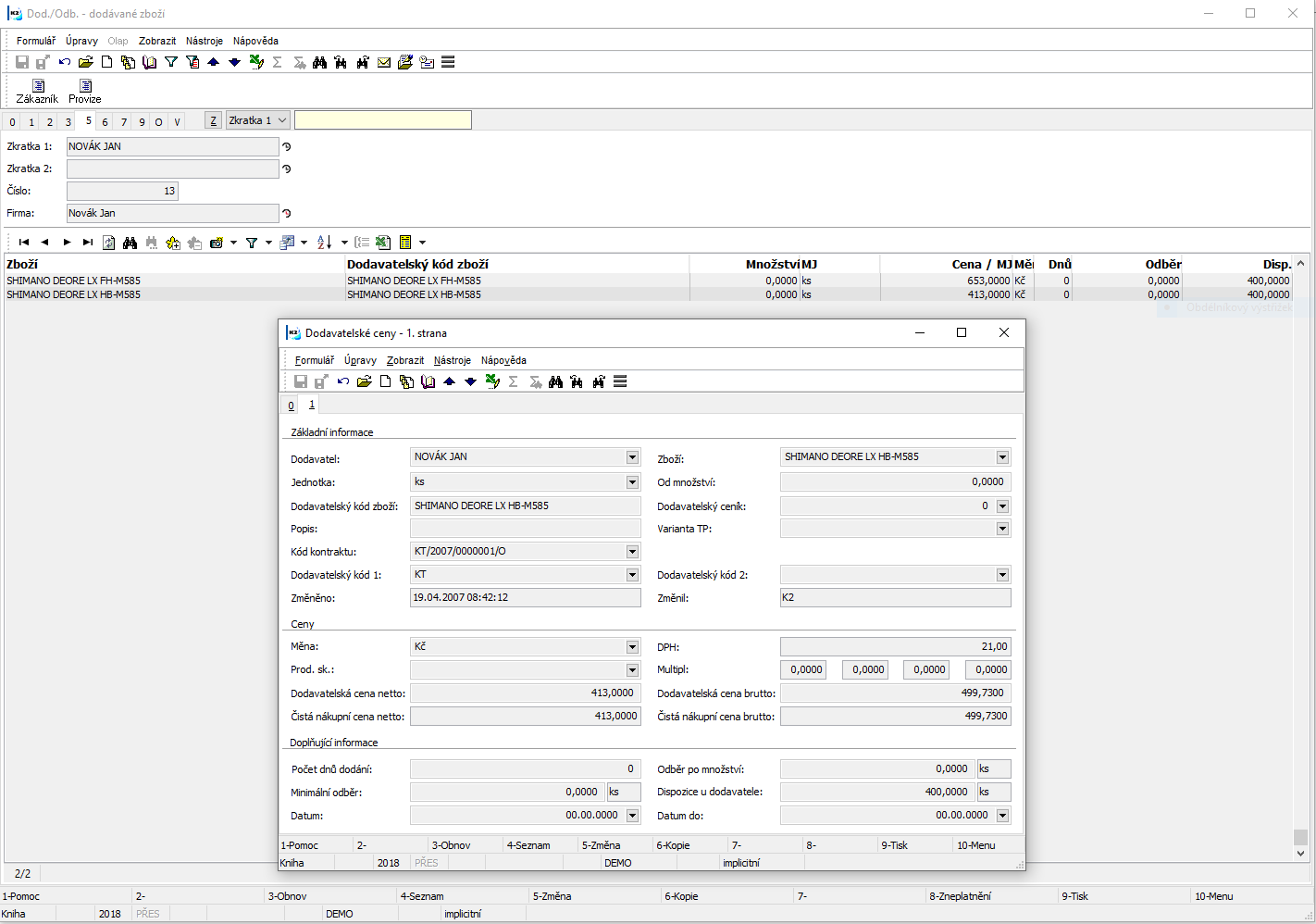 If there are items on the 5th and 8th page, the 4th page of the Article tab (supplier prices) will be displayed in the Browsing and on the 7th page from the bottom of the form it will be displayed in the Browsing 2. Page ofArticle card (purchase prices)