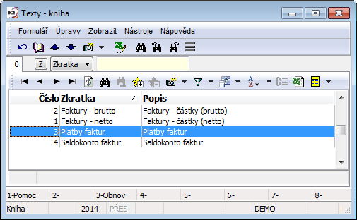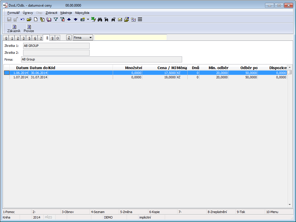 Field which can serve for evaluation. It enters into the accounting. Documents related with appropriate supplier/customer (invoice, sales order etc.) pick up contract code entered on the Suppl/Cust. card .