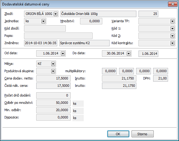 Field Price group indicates to which price group is customer sorted. Price group is, next to the fields Code and Group, one of the resolution criterion for division of the Suppl/Cust. database to the smaller units. Price groups are mutually different by size of price surcharge or discounts in the sale of articles. IS K2 enables to define even 255 price groups (see the chapter Articles - Selling prices - Price groups). Obligatory detail.
