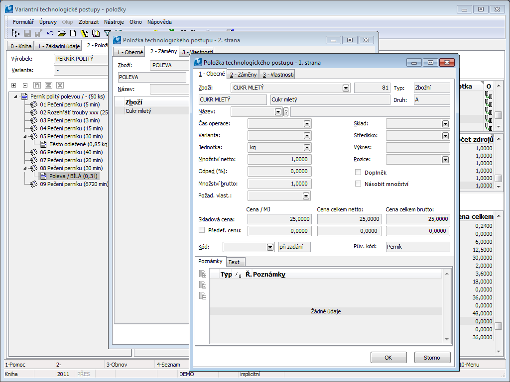 Direct materials are inputs into production for which it is necessary to keep accurate stock records and prices of which are reflected in the stock price of the product. They are therefore an essential component of the product. The type and quantity of direct material are specified in the routing of the product and in the Calculation Model. It is necessary to enter the actually consumed amount of direct materials into the job cards. It is important for the statistics of the difference between planned and actual consumption, or for a change in the routing.